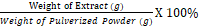 The percentage yields of the crude extracts of the plant calculated as follows