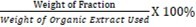 Percentage yield of fraction =