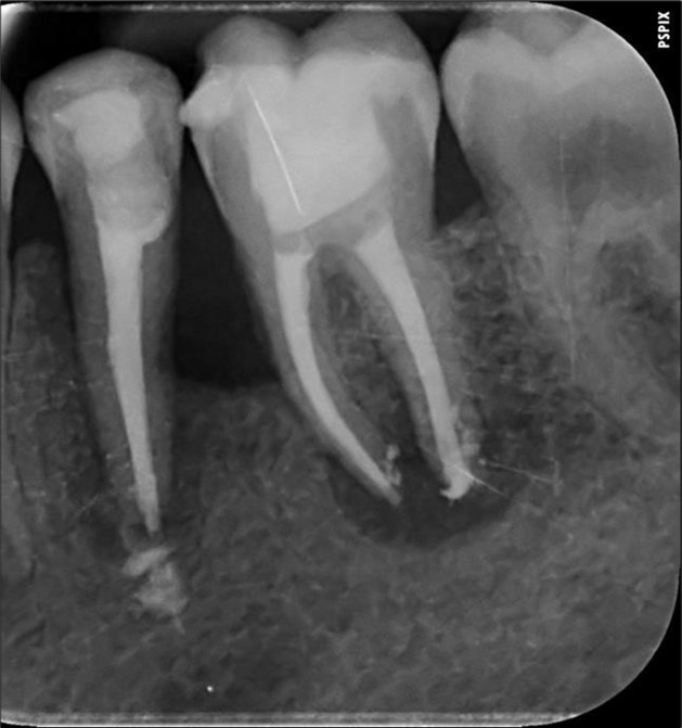 Vitamin D deficiency is known to affect bone healing 1. In this case report, the potential link between vitamin D, calcium, and phosphorus deficiency and periapical lesions is explored, offering fresh insights into the complex relationship between systemic health and dental pathology. This pathology is caused by a mutation in the PHEX gene on chromosome X, which encodes a protein necessary for vitamin D synthesis and phosphate reabsorption, which are essential for the mineralization of bone and teeth 2, 3. A 25-year-old man with rickets and vitamin D deficiency presented to our clinic with recurrent abscesses in multiple teeth. Radiographic imaging revealed periapical lesions on multiple teeth with advanced endo-perio lesions on teeth 26 and 16, and a negative cold test on all his teeth. Despite successful endodontic treatment, the patient’s compromised metabolic healing raised concerns about the prognosis. This case report highlights the intricate interplay between vitamin and mineral deficiencies and dental health, emphasizing the need for cautious management and long-term follow-up.