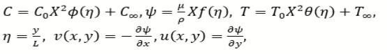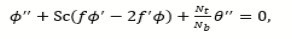 where r=(C0 𝜸C)/(T0 γT ), M=(L2 σl B0)/μ, Pr=νflfl is the Prandtl number Nb=(ρc)np DB𝜸 C0 x2) / (ρc)lf L2 a), Nt=(ρc)np DTh x2) / (ρc)lf L2 a), L= μν fl)/(σ0 T0 γT) are the Marangoni factor (r), modified Hartman number (M), Prandtl factor (Pr), Brownian motion parameter (Nb), Schmidt number (Sc), Thermophoresis parameter (Nt) and reference length (L), respectively. The second grade fluid parameter (α) is defined as α1/(ρfl L2).