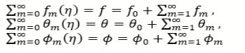 are the general solutions where Mi are the arbitrary constants for i=1-7 and fm* (η) ,θm* (η), ϕm* (η) are special solutions.
