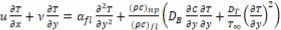 Here u , ν are the horizontal and vertical velocity components, respectively v fl. is the kinematic viscosity, ρfl is the density of fluid B0 is the magnetic effect involved in the model for MHD, σ is the surface tension, αfl is is thermal diffusivity of the fluid, the ratio between heat capacity of the nanoparticles (ρc)np and heat capacity of base fluid (ρc) fl. DBr is Brownian diffusion, DTh is Thermophoresis.