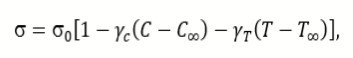 The surface tension σ, being a function of T and C can be defined as follows: