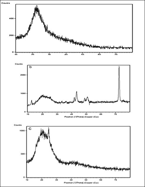 Figure 3.XRD of a) CI-PAA-PPy , b) Cu-PAA-PPy and c) CNF-PAA-PPy