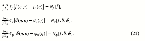 where p∈[0,1] is a typical embedding parameter and ĥf, ĥθ, ĥϕ are so-called auxiliary parameters with Nf, Nθ, Nϕ are the non-linear operators. For p=0,1, we have:
