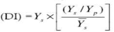 Accordingly, Stress tolerance (TOL) has been defined as the differences in yield between the stress (Ys) and non-stress (Yp) environments and mean productivity (MP) as the average yield of Ys and Yp 16. Geometric mean (GMP) 17, mean productivity (MP) 18, harmonic mean (HM) 19, stress sensitivity index (SSI) 20, yield stability index (YSI) 21, yield index (YI) 22, stress tolerance index (STI) 23, relative drought index (RDI) 24, drought response index (DI) and stress sensitivity percentage index (SSPI) 25. 26 In evaluation of drought resistance indices and their correlation with other traits concluded that there are differences among genotypes for many of these indices. Several selection criteria have been proposed to select genotypes based on their yield in stress and non-stress environment.