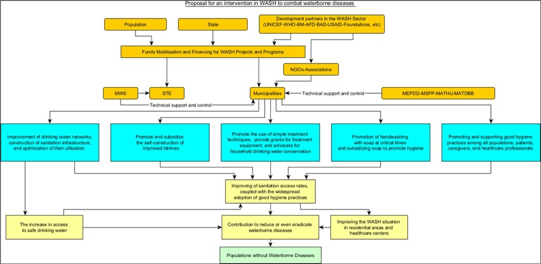 The absence of large-scale wastewater treatment systems and insufficient solid waste collection hinder sanitation efforts, posing severe risks to public health and the environment 73. The prevalence of waterborne diseases underscores the pressing need to improve the safety of drinking water and sanitation. Additionally, the healthcare industry is grappling with a dearth of qualified personnel and medical resources, emphasising the need for improvement. This study aimed to develop strategies for districts to combat waterborne diseases, focusing on their reduction, if not eradication, in the study area and other cities in Chad.
