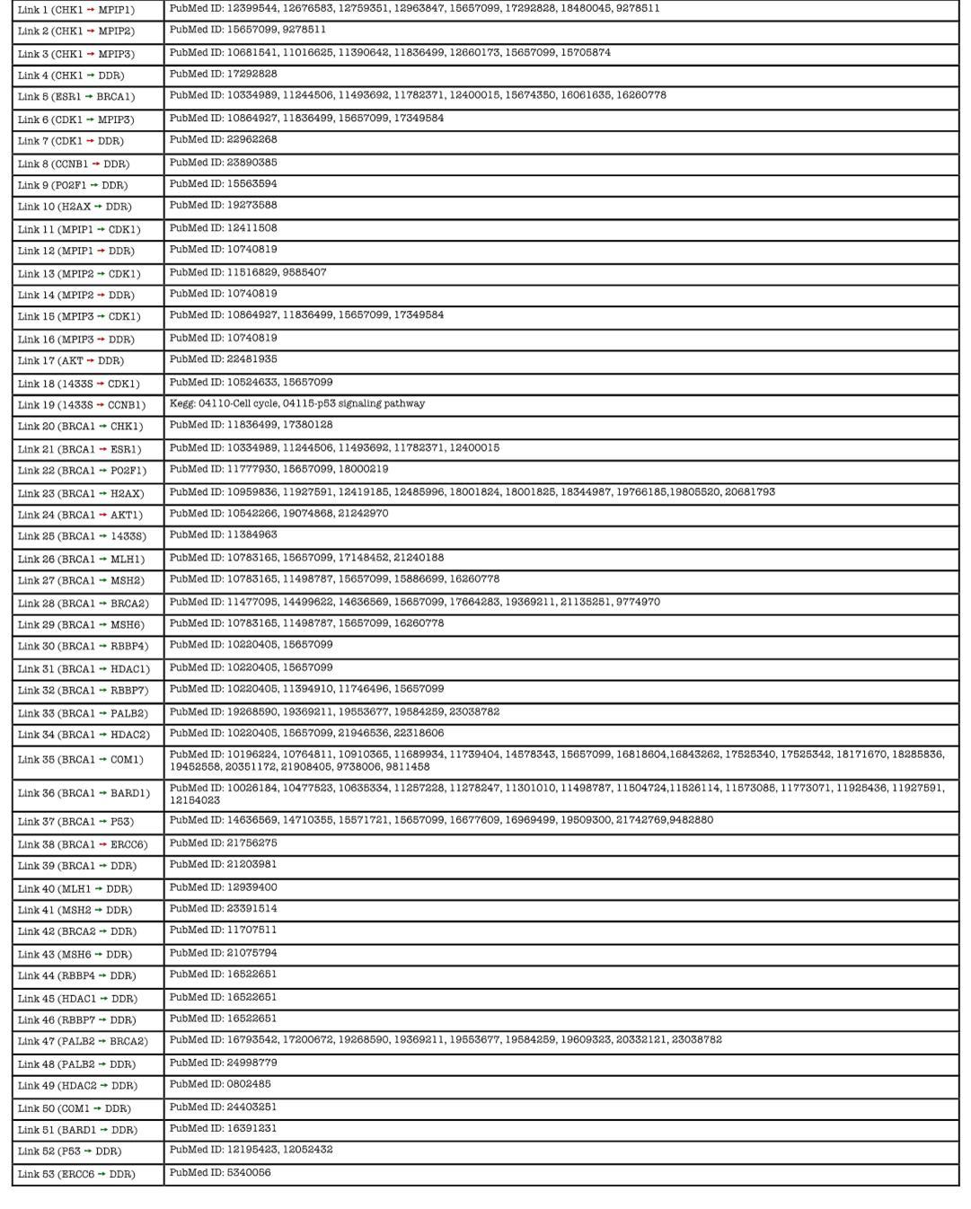 | P38398 | BRCA1 | does not activate | P40692 | MLH1 |