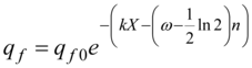 where qf there is frequency of the some recessive allele of two-allele systems inthe Х-chromosome at the woman, n= t/T - dimensionless time, t - current time,Т - the normalizing time equal to the average period of generations alternation in the moving population T  ≈  25 years .