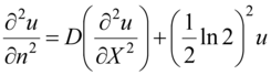 Where u(n,X) there is new variable dependent on dimensionless time and coordinate of moving.