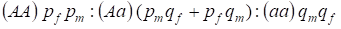 At mating there is a ratio of genotypes at the women according to product (pf + qf) (pm +qm).