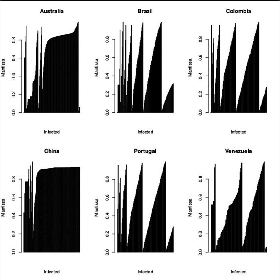 Figure 1.The results of the mantissa values in the following countries: Australia, Brazil, Colombia, China, Portugal and Venezuela.