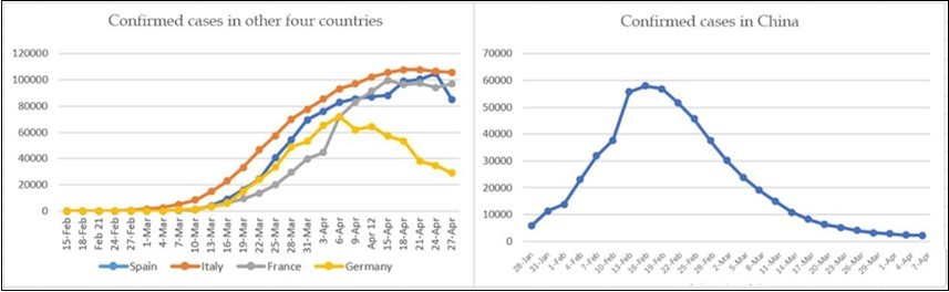 After the outbreak of COVID-19 in China, COVID-19 has also erupted in other countries in the world. Among the countries where new pneumonia outbreaks, Spain, Italy, France and Germany are more serious1. As of April 27, Spain, Italy, France and Germany have each accumulated diagnosed 229842 cases, 199414 cases, 165,842 cases, 158758 cases, the new crown pneumonia spread and various measures of everyday life and people's social normal operation had not Estimated impact2.