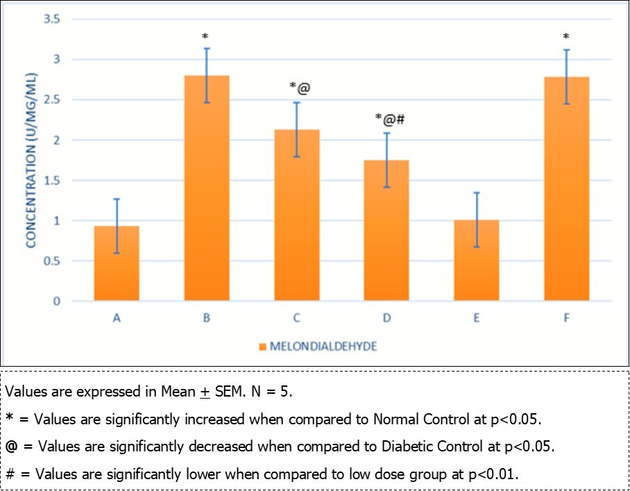 Figure 2.Comparison of Melondialdehyde in the different experimental groups.