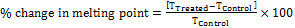 Where TControl and TTreated are the melting point of the control and treated samples, respectively.