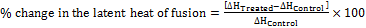 The % change in the latent heat of fusion (ΔH) was calculated using the following equation 8: