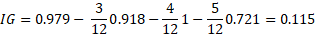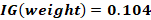 When we divide the parent set by the weigh attribute, the information gain gives the value 0.115.