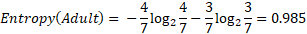 We have four male and three female so the entropy is equal to: