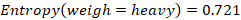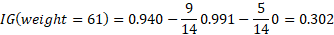 · Calculate the information gain for the “Weigh” attribute: