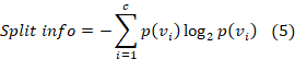 Where N(vj) the number of records is associated with a split or an unique value, and N is the total number of records.