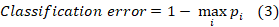 There are other measures of impurity 2, such as “Gini Index”, that measures the divergence between the distributions of the target attribute’s values and the “classification error”: