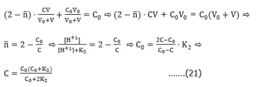 K1 ⋅ (C0/C-1)= C ⇨ C0 = C+C2/K1⇨ C0 = C+C2 ⋅ 10pk1 …...(14)