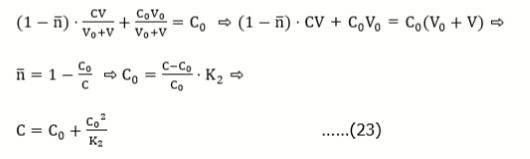 Denoting K1⋅(C0/C-1)= y, we have: y – KW/y – C = 0 ⇨ y2 – C⋅y – KW = 0 ⇨ y = C/2 ⋅ (1+(1+4KW/C2)1/2) ...(15)
