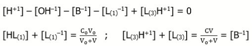 [H+1] – [OH-1] = [B-1] + [L-1] ….(3)