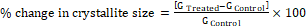 Percent change in crystallite size (G) of iron sulphate was calculated using following equation 2:
