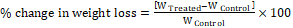 Where, WControl and WTreated are the weight loss of the control and Biofield Energy Treated samples, respectively.