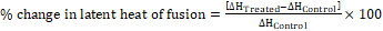 Also, the percent change in the latent heat of fusion (ΔH) was calculated using following equation 8: