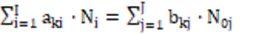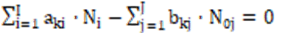 If dk (k=1,…,K*) are equal to (or involved with) ONs of electron-non-active elements, then the resulting balance involves only the components (Ni, N0j) related to electron-active species/compounds, with coefficients equal to (or involved with) ONs of these element. More precisely, dk are the products of the number λk of defined atoms in the species and the ON value ωk, i.e.