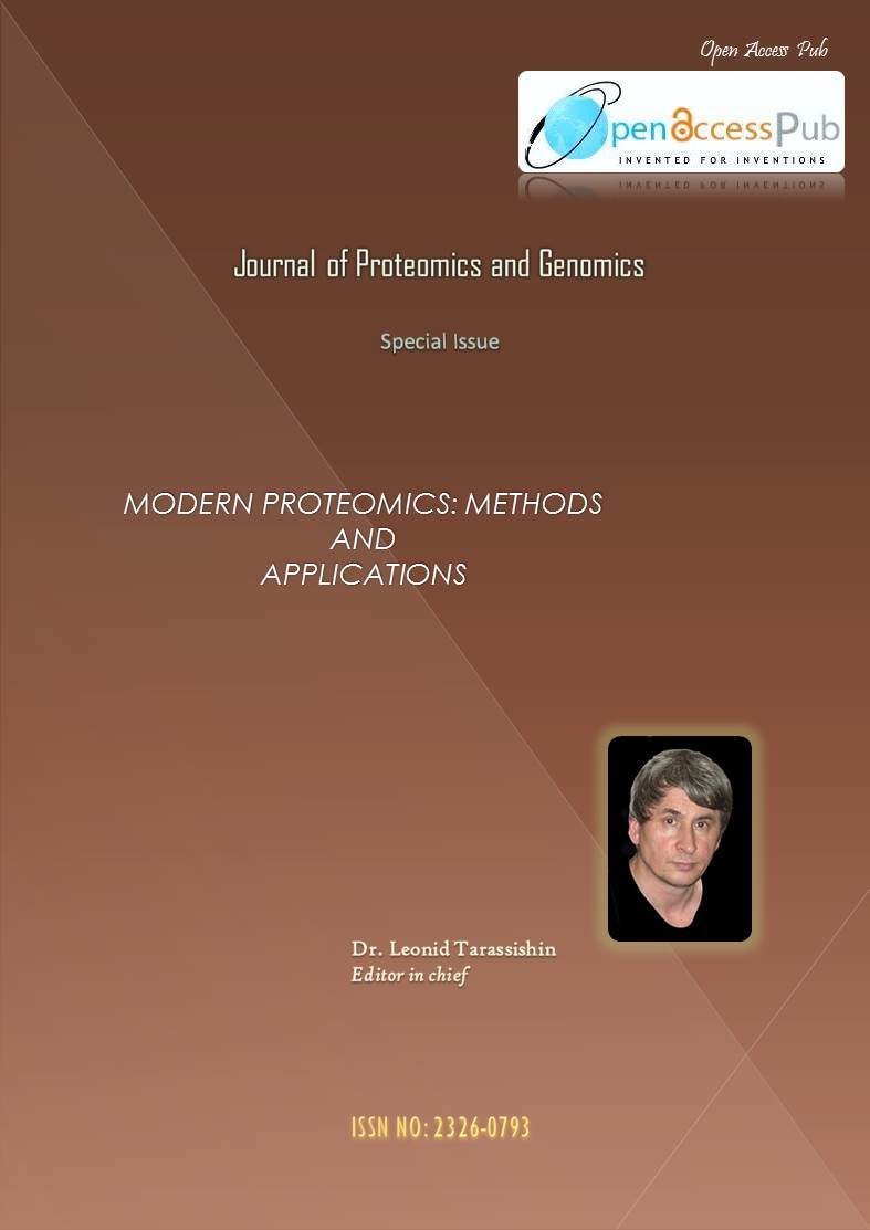 Leonid Tarassishin (2014) Modern Proteomics: Methods and Applications – Special Issue. Journal of Proteomics and Genomics Research - 1(3):0-0. https://doi.org/10.14302/issn.2326-0793.jpgr-13-sicover