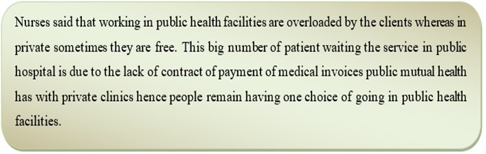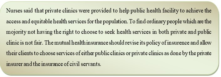 During the interview, nurses working in private hospital said that public mutual health insurance should be flexible to let their client choose where they want health services like done by other insurer. The nurses explained in the following way: