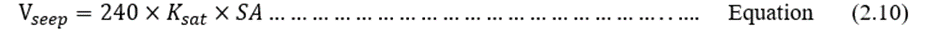 · Vseep is the volume of water lost from the water body by seepage in m3