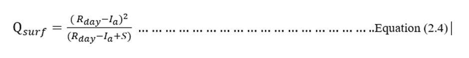 · Qsurf is accumulated runoff or rainfall excess (mm water)